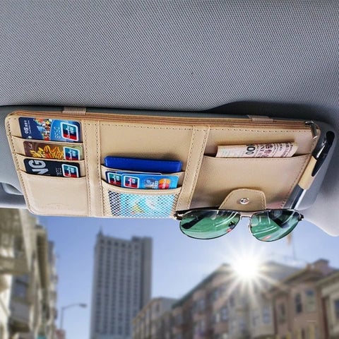Keep all your small travel necessities in your car neat and organized by storing everything you need in this premium quality All-In-One Car Sun Visor Organizer. It keeps documents and small vital travel items organized and instantly accessible when needed. Keep driving safely!!!